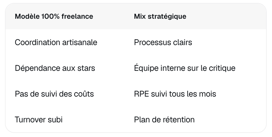 If you rely too heavily on freelancers without a structure, your RPE collapses and your margins with it.
